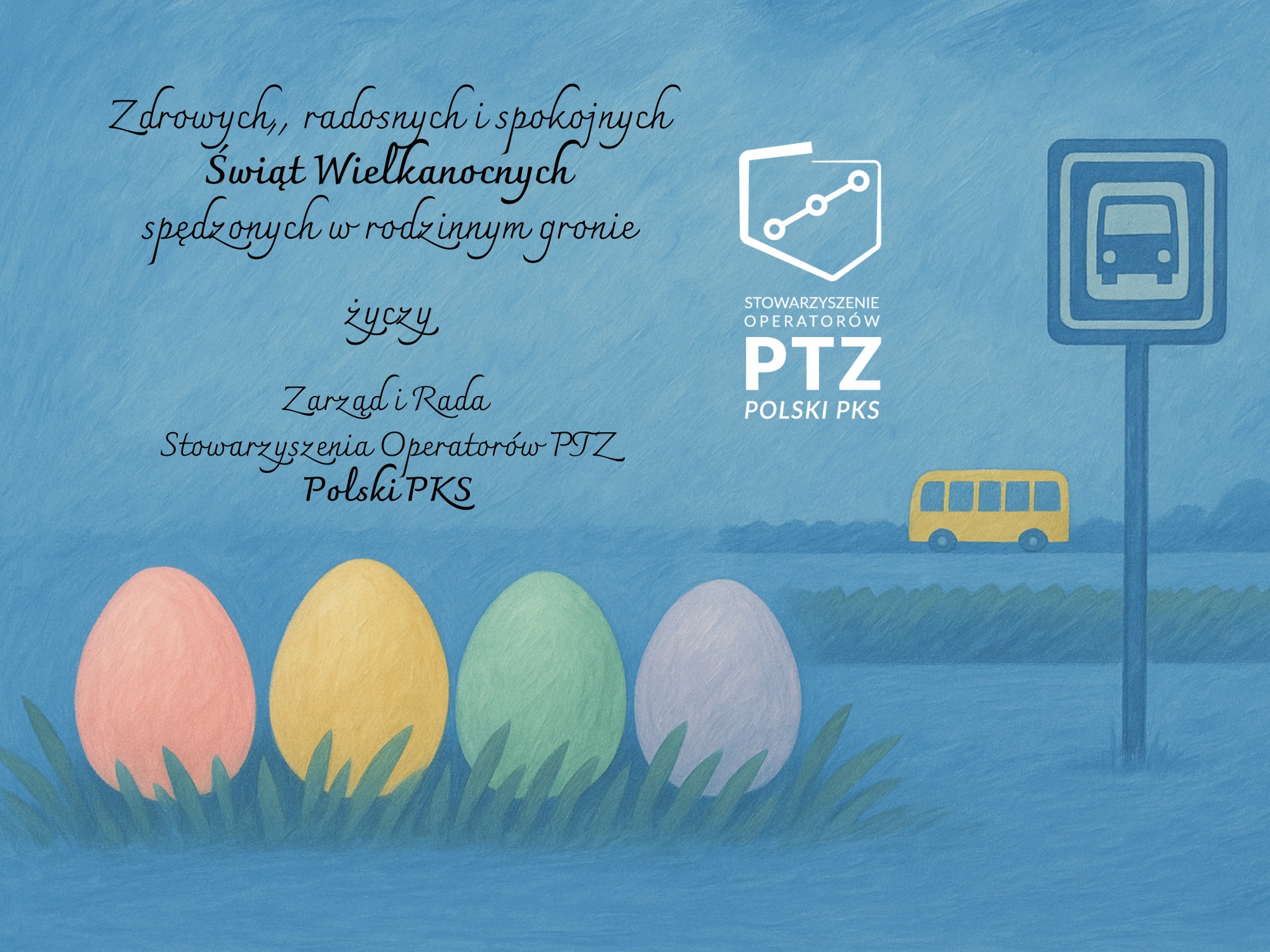 Zdrowych, radosnych i spokojnych Świąt Wielkanocnych spędzonych w rodzinnym gronie życzy Zarząd i Rada Stowarzyszenia Operatorów Publicznego Transportu Zbiorowego Polski PKS.